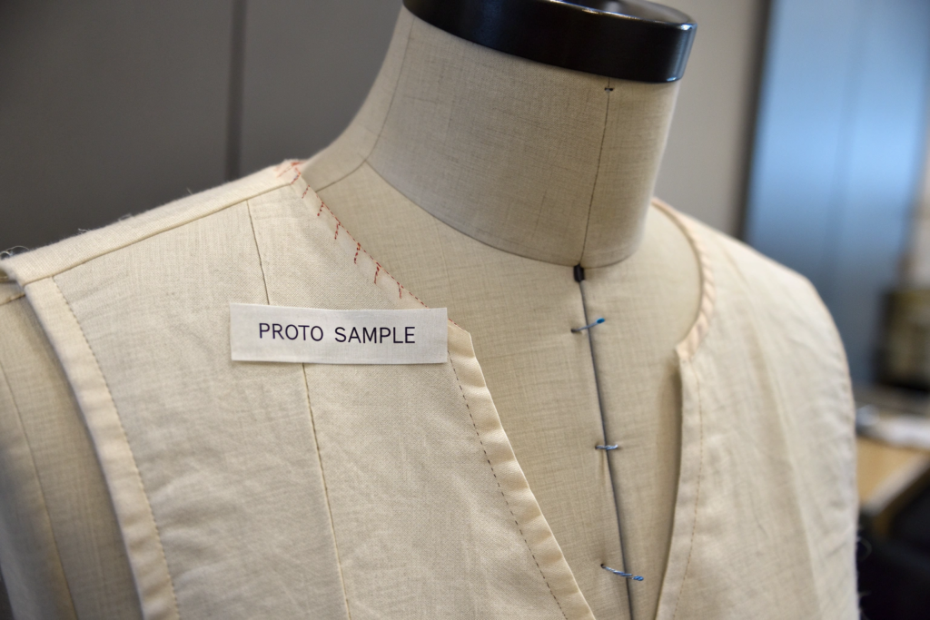 The primary purpose of the Proto Sample is to evaluate the overall silhouette, proportions, and basic construction. It answers fundamental questions: Is the general shape correct? Are the seam lines in the right place? Is the length in the right ballpark? It is a 3D sketch that allows the designer to see their vision translated into a physical form for the first time.