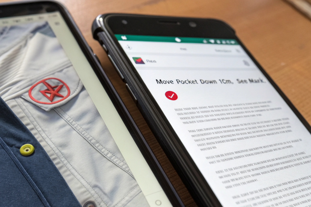 Visual communication—annotated photos, short video clips, and marked-up tech pack images—transcends language barriers. A picture of a crooked seam with a red arrow pointing to the issue is universally understood. A 10-second video of a zipper catching is more effective than a 200-word description of the problem. This method reduces back-and-forth and ensures everyone is looking at the same thing.